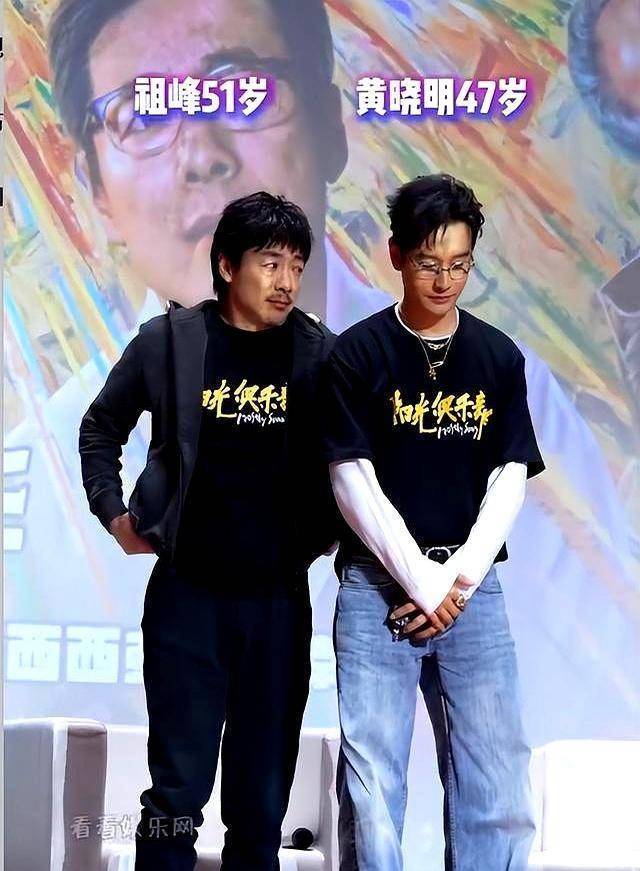 两个人合照,被网友直接称作“爷爷带孙子”,其实祖峰只比黄晓明大三岁,但气场真的差了不止一个年代。